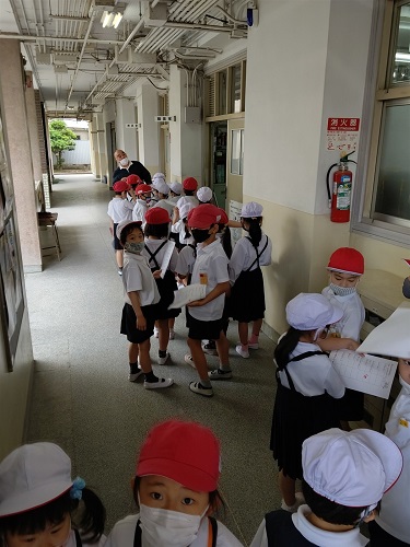 本日の3時間目に、1年生と2年生の児童が、「がっこうたんけん」を行いました。1年生と2年生が、4人〜6人の一緒の班になり、2年生が1年生を助けてあげながらたんけんしました。