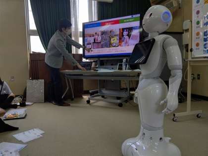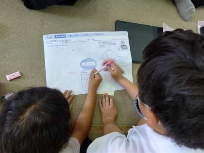 一人一台端末のChromebookノートパソコンを使い、ロボブロックスのソフトでプログラミングします。