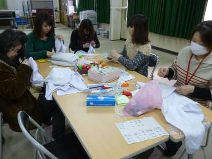 各クラスで補修が必要となった白衣を一枚一枚丁寧に修繕してくれています。