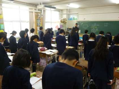 この日は5時限で授業が終わるため、地震発生時間より少し早い、午後2時25分から1分間、東北大震災で犠牲になった人たちのご冥福を祈り、全校一斉に黙とうをささげました。