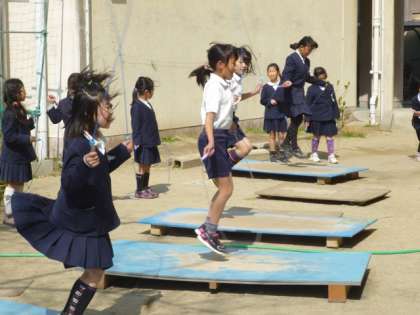 昼休みの運動場やなわとび台、遊具は、元気に動き回る子ども達でいっぱい。