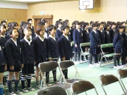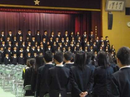 今日の3・4限は5・6年生合同で卒業式の通し練習。
