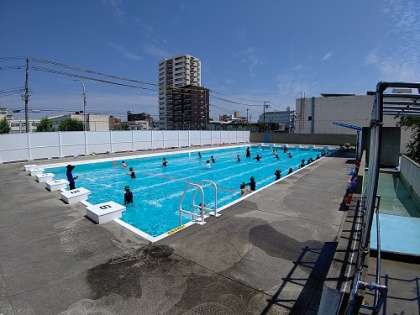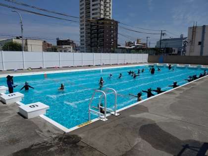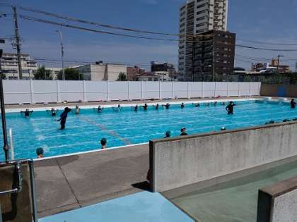 本日より、プールが始まりました。水の中を上手に歩く練習をしています。