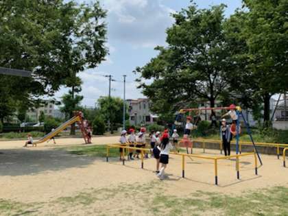先生のお話をきちんと聞いてから、公園で楽しい時間を過ごしました。