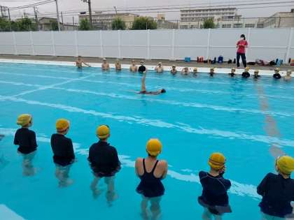 子どもたちは、橘さんが水中で足だけを水面上に出し高速で回転する様子に、感動の声が上がりました。