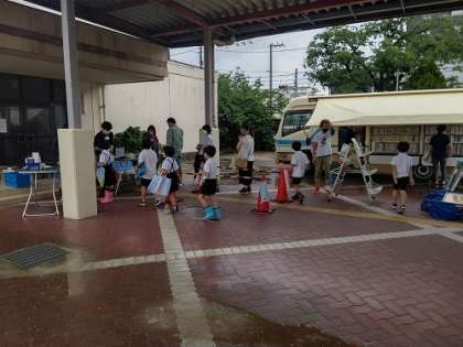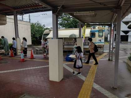 本日は月に一度の自動車文庫の日でした。雨の中、地域の方々も来てくださいました。