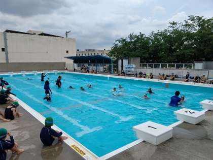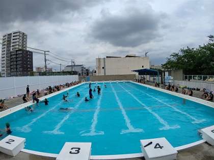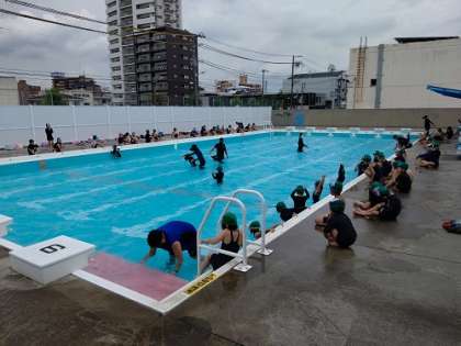 プールの横12mを泳いでいます。