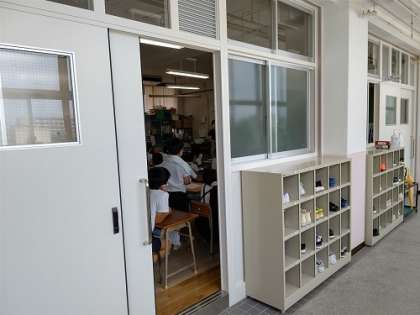 夏休み中の4年生のフロアーの改修工事が行われました。ドアや窓がアルミサッシになり、靴箱もスチールになり、床も一部きれいになりました。