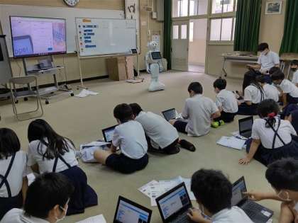 Chromebookで、ロボブロックスというソフトを使い、プログラミングの学習をしています。