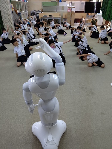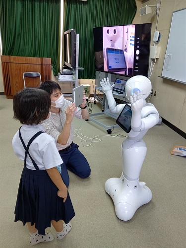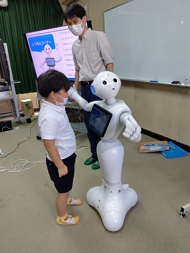 ペッパーに質問をすると答えてくれます。質問の内容は、「としはいくつ?」「うまれたくには?」「しんちょうは?」「たいじゅうは?」「すきないろは?」「すきなたべものは?」「とくいなことは?」「すきなアニメは?」について話しかけると、いろいろ答えてくれました。