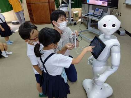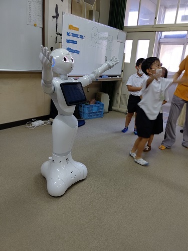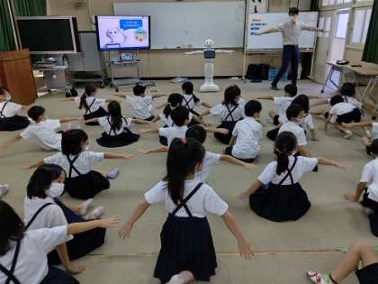 ペッパーと一緒に、「ラジオ体操」もしてみました。ジャンプ以外はとても上手にできました。
