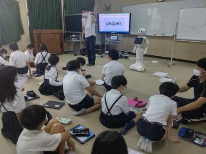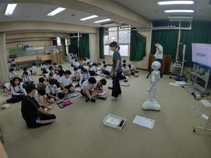 ペッパーが、「わたしの町」についてのテーマでしゃべってくれる学習をしています。