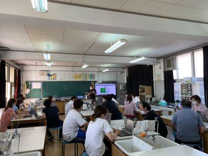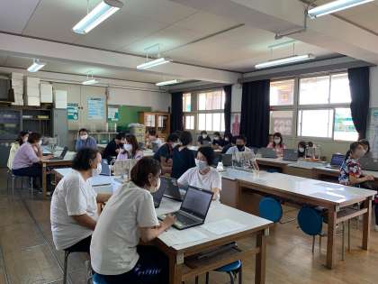 先生達がパソコンでスマートスクールの使い方を練習したり、子ども達がChromebook(クロームブック)でスマートスクールの「心の天気」を使うことができるようにする方法を確認したりしました。
