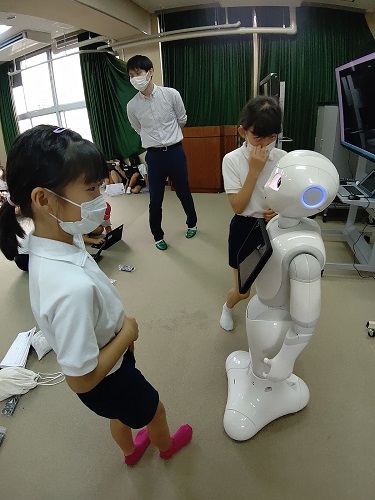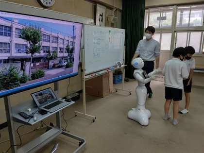 ペッパーが、豊里の町の学校やお店についての質問に答えてくれます。