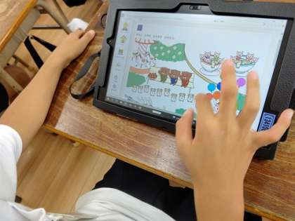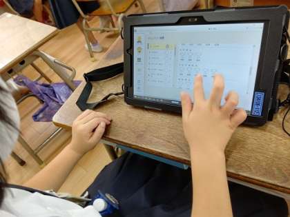 タブレットPCを使って、デジタルドリルの学習をしています。
