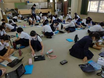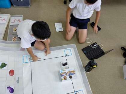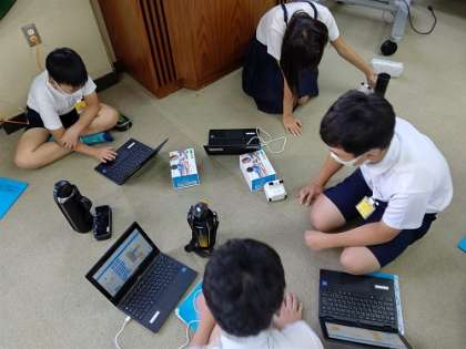 Chromebookを使って、mblockのソフトでプログラミングをしています。code rockyロボットの各センサーの活用を考えています。