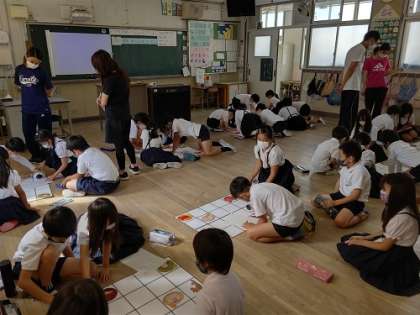 3時間目に3年1組において、プログラミング学習の研究授業を行いました。プログラミング教材ロボットのアリロを使っています。意図したところへ手順を考えてアリロを動かすことができるようにグループで協力しながら進めています。