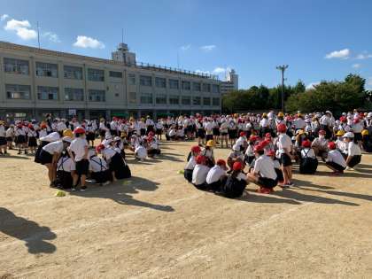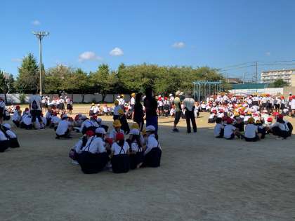 今日も運動場で子どもたちが児童集会を行いました。