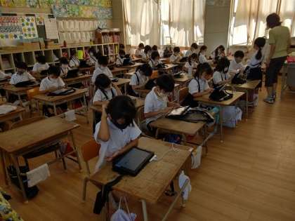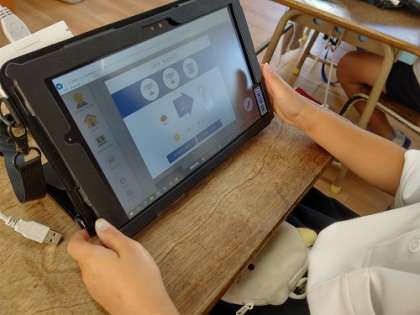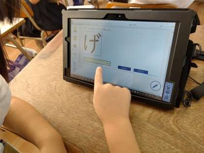 タブレット端末を使って、デジタルドリルの学習をしています。