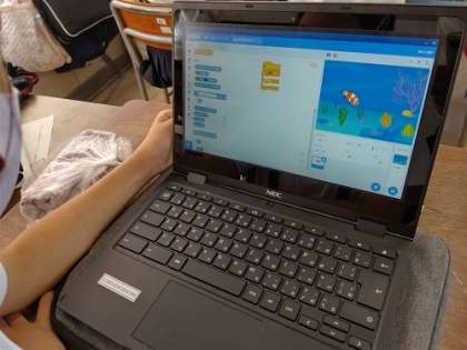 Chromebookを使って、スクラッチでプログラミングをしています。