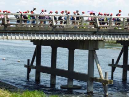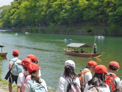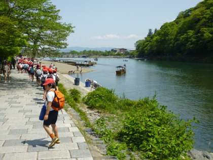 帰りは、コースをかえて、桂川に流れ込む「保津川くだり」を見学。