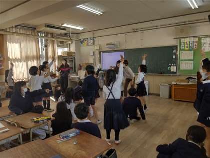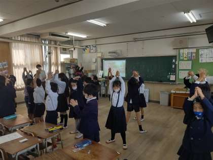 2時間目は、教室で、「きらきら星」「にじ」などの歌を歌ったり、曲に合わせて「パプリカ」のダンスをしたり、じゃんけん大会をして楽しく過ごしました。