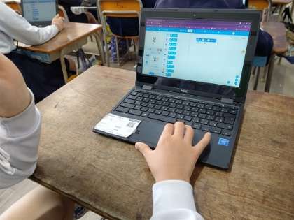 Chromebookを使って、mblockのソフトでプログラミングを学習しています。