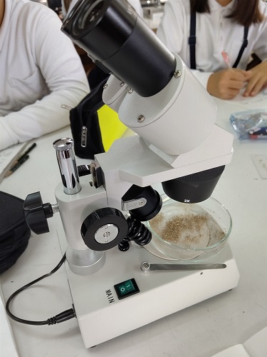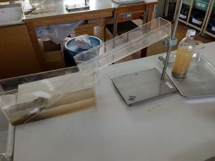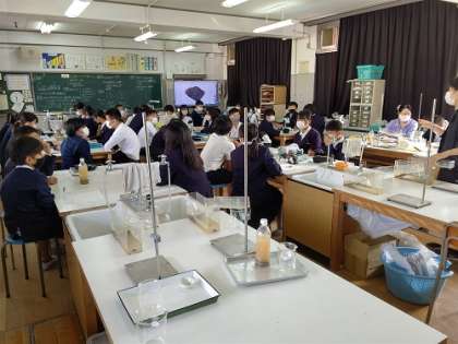 理科の実験で、「火山灰にはどんな特ちょうがあるのだろうか」の学習をしています。