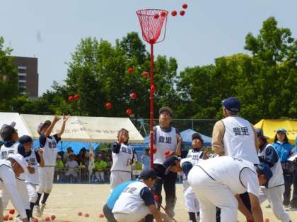 ○第1競技は「玉入れ」、大人に交じって子ども達も負けてはいません