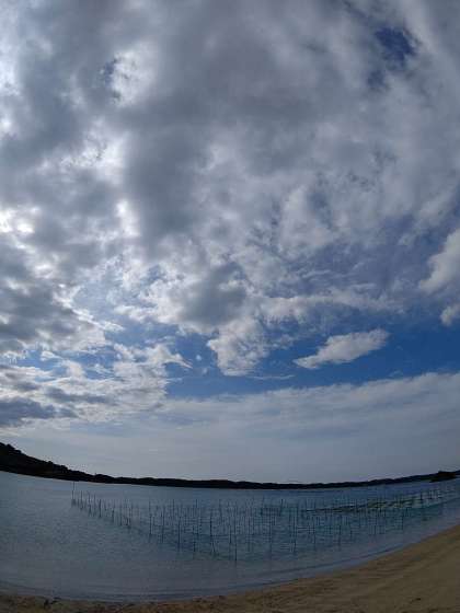 沖の方まで漕ぎ出でています。