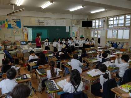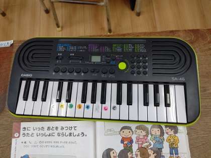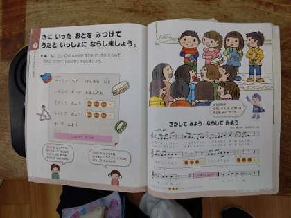 音楽で、いろいろな楽器を使って、演奏しています。