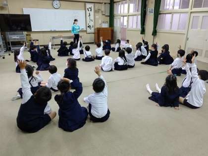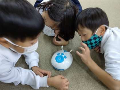 プログラミング学習の授業で、ロボットのアリロを使って、基本的な使い方を学習しています。
