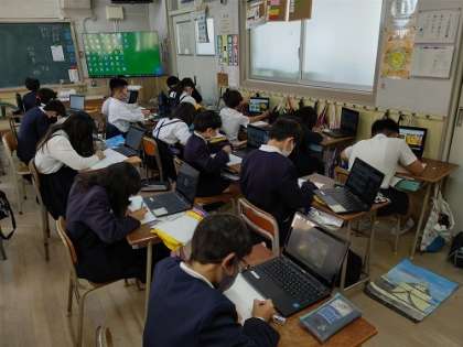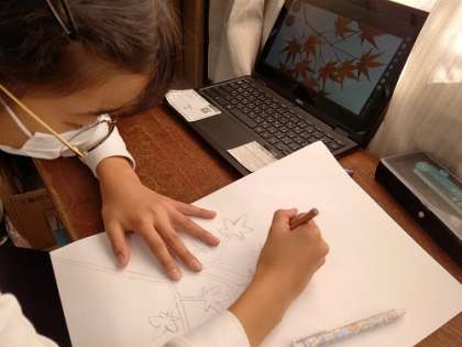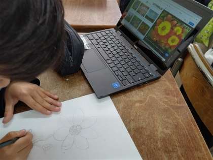Chromebookを使って花の絵を調べて、絵を描いています。