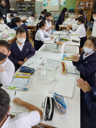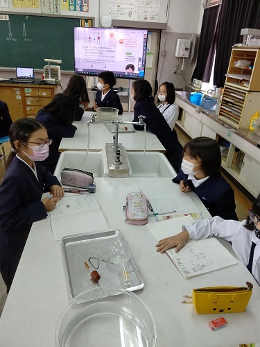 理科で、「ものの温度と体積」の学習で、「空気をあたためるとどうなるか」の実験をしています。