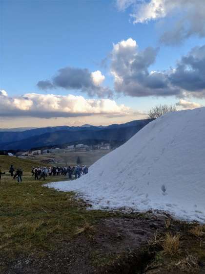 ようやく雪のあるふもと近くまで下りてきました。