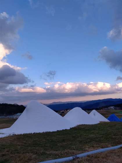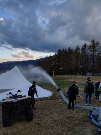 来月のスキー場開きに向けて、人工雪を降らしています。