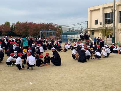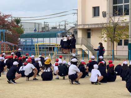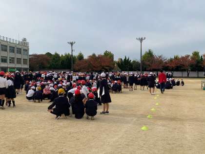 本日、運動場で児童集会をしました。定番の「もうじゅうがり」を集会委員会の児童がアレンジし、「学校にいこうよ」をしました。子どもたちは大盛り上がりでした。