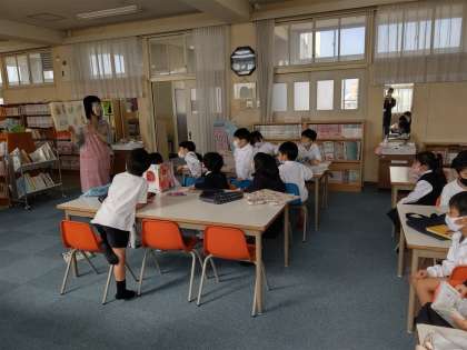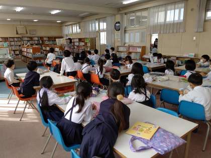 本日、2・3・4時間目、絵本ばたけの方々が来てくださり、1年生に絵本の読み聞かせをしてくださいました。新型コロナウイルス感染症が拡大する前は、毎週来てくれていましたが、約1年半ぶりの絵本の読み聞かせをしてくれました。子どもたちは、絵本の中に引きよせられたようで、とても集中して話を聞いていました。