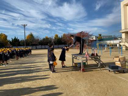 校長先生から、「教室で暖房をつけている時に窓を開けて換気をしている場合は、寒くなるので上着を着てもいいですよ。」「寒くなってきましたが、ポケットに手を入れないでください。登下校時は手袋を着けてもいいですよ。」とお話がありました。