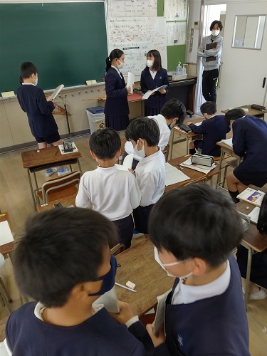 4年生の算数で、「小数のかけ算やわり算」の研究授業を行いました。