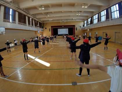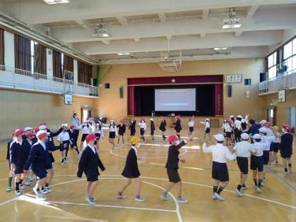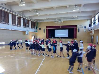 体育館で、「だんごむし体操」「もうじゅうがり」「じゃんけん列車」「ラーメン体操」などをして楽しく過ごしました。