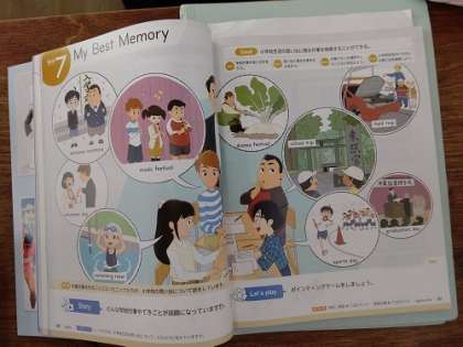 英語で、C−NETの先生と、「My Best Memory」小学校の思い出に残る行事などについて学習しています。