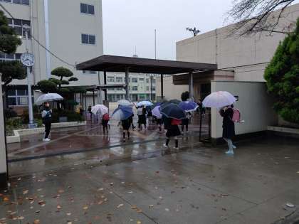 本日、朝の登校時に、地域-保護者の方々が、通学路の各所で、子どもたちの安全を見守ってくださいました。雨の中、ありがとうございました。