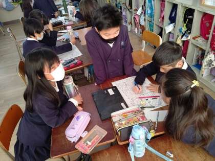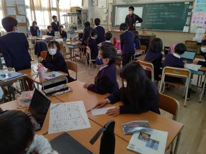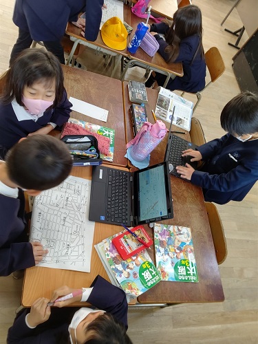 班で協力して、豊里安全マップを作っています。「まちでふだんから安全に注意しなければならないところを見つけよう。」をめあてに、Chromebookも使って、調べています。