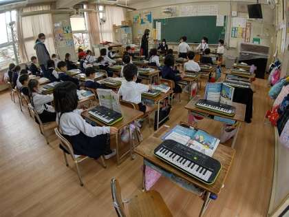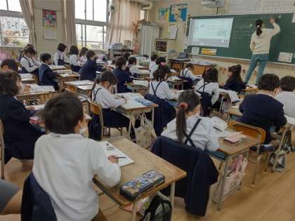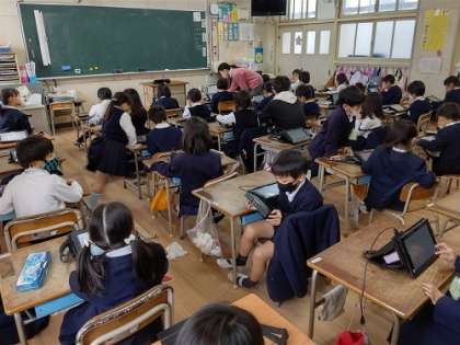 各学級、楽器の演奏、算数の学習、タブレット端末を使ってデジタルドリルの学習をしています。