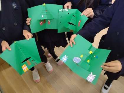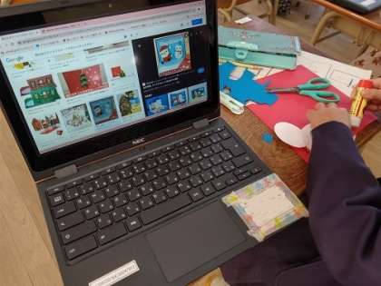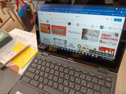 Chromebookを使って、クリスマスに関する飾りやデザインを調べ、クリスマスカードを作りました。