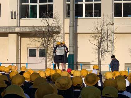 最後に、健康委員会から「ハンカチ持ってこよう週間」についてお知らせがありました。「手を洗った後、きれいなハンカチで手を拭くため、毎日ハンカチを持ってきましょう。」と呼びかけました。
