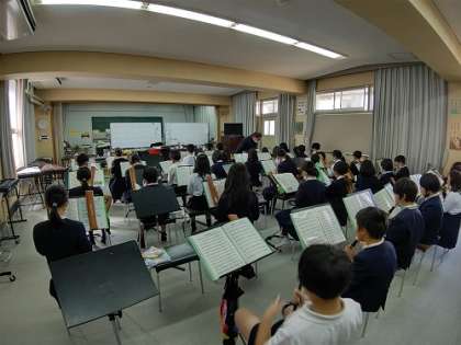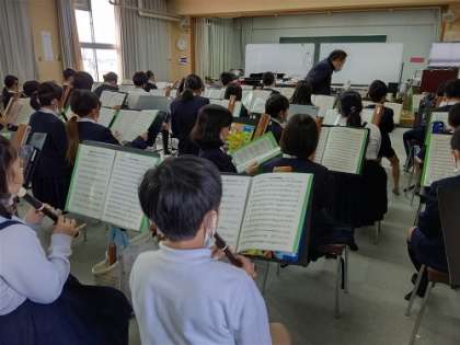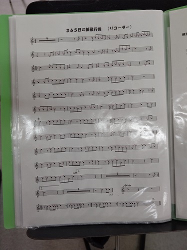 音楽で、「365日の紙飛行機」のリコーダーの練習をしています。