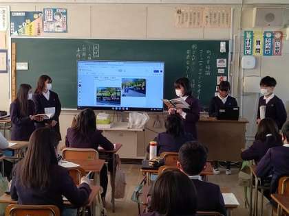 Chromebookを使って、JAMボード機能を用いて、プレゼンテーション発表会を行いました。テーマは「町の幸福論・コミュニティデザインを考える」で、班で協力して発表内容を考えました。