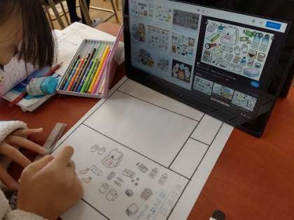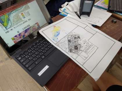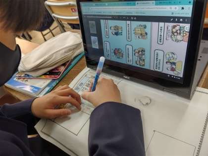 理科で、豊里(東淀川区)のハザードマップを作っています。Chromebookを使って、自然災害による被害の軽減や防災対策に使用する内容を調べたり確認したりしました。